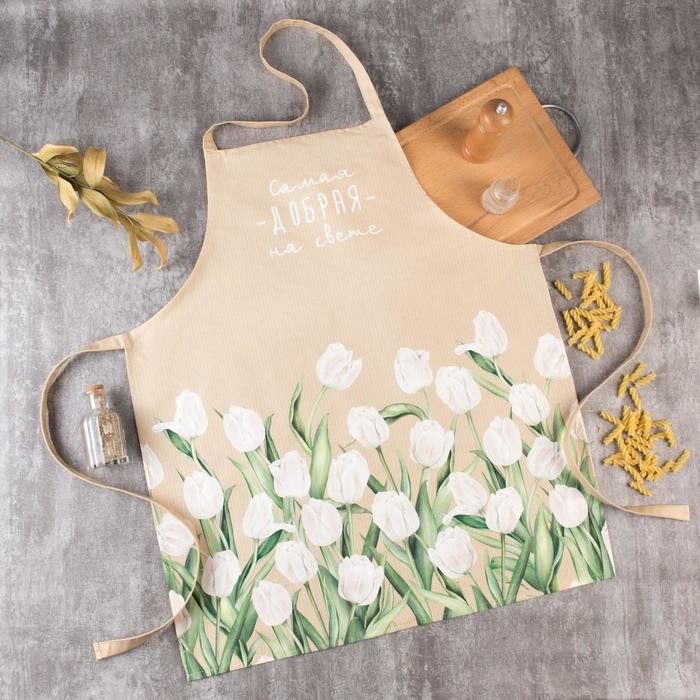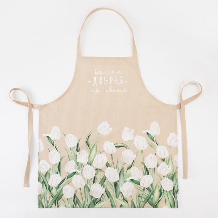 Фартук «Этель» Белые тюльпаны 60*70 см, 100% хлопок, саржа 190 г/м2