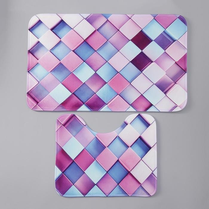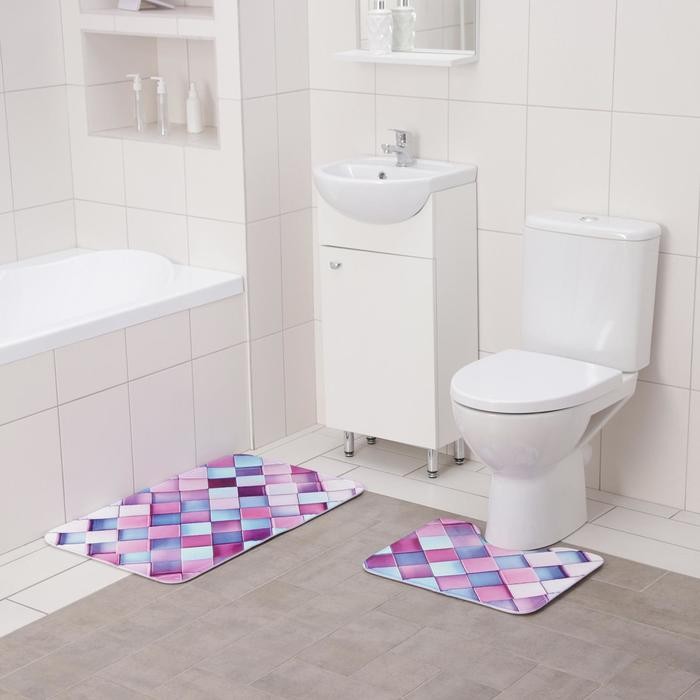 Набор ковриков для ванны и туалета Доляна «Мозаика», 2 шт: 40×50, 50×80 см