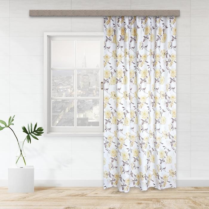 Штора портьерная блэкаут Японский пион 135×260 см, жёлтый, пэ 100%