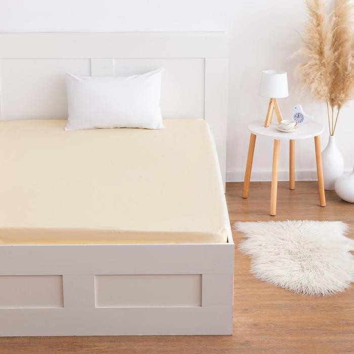 Простыня на резинке Этель 140*200*25 см, цв.желтый, 100% хлопок, мако-сатин, 128 г/м²