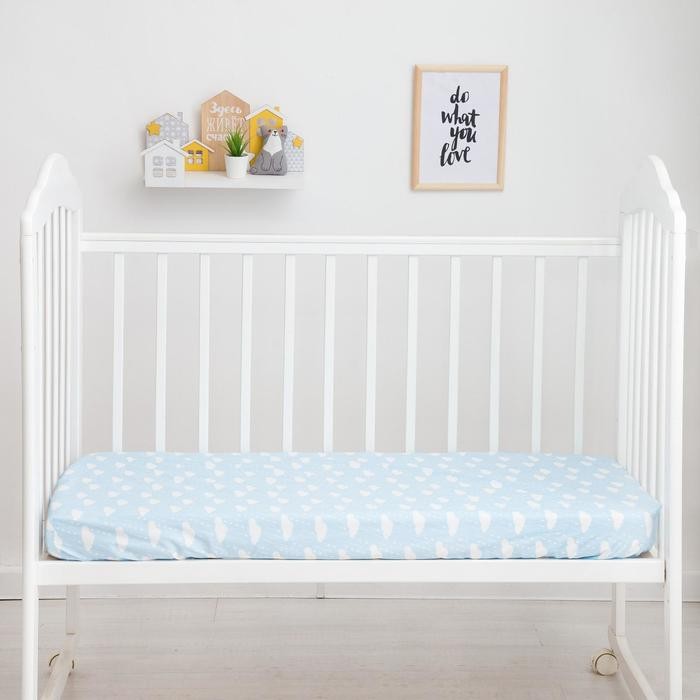 Простыня на резинке «LoveLife» Голубые облачка 60*120+20 см, 100% хлопок, сатин