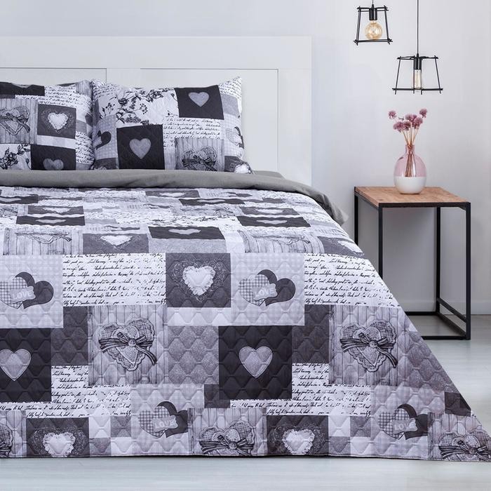 Комплект «Этель» Grey heart, покрывало 230×210 ±5 см и наволочки 50×70 — 2 шт, микрофибра