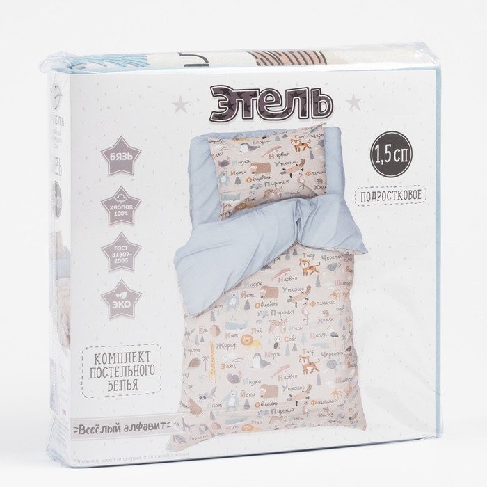 Постельное белье Этель 1,5 сп «Веселый алфавит» 143×215 см, 150×214 см, 50×70 см -1 шт