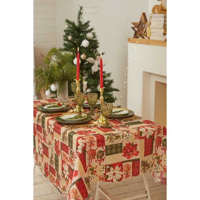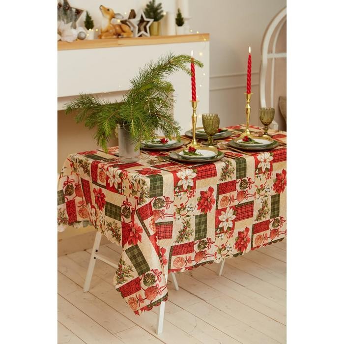 Скатерть Доляна «Новый год: Новогодние игрушки» 145*260 +/- 2 см, 100% п/э