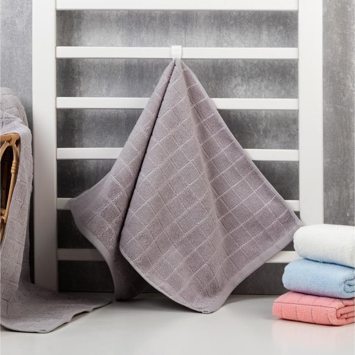 Полотенце махровое Этель «Клетка» цв.серый, 34*70 см, 350 гр/м2, 100% хлопок