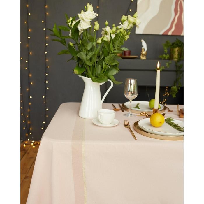 Скатерть Этель 240×165 см, цв. пудровый с золотой нитью, 100% хлопок, 163 г/м2