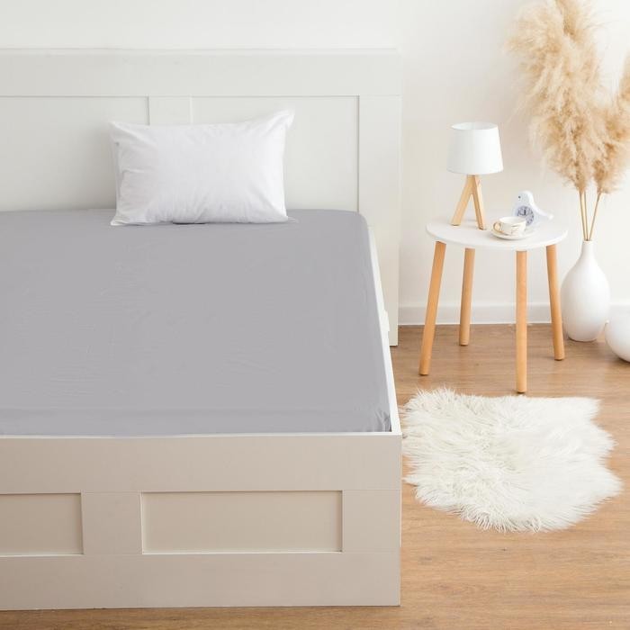 Простыня на резинке Этель 140*200*25 см, цв. серый, 100% хлопок, мако-сатин, 128 г/м²