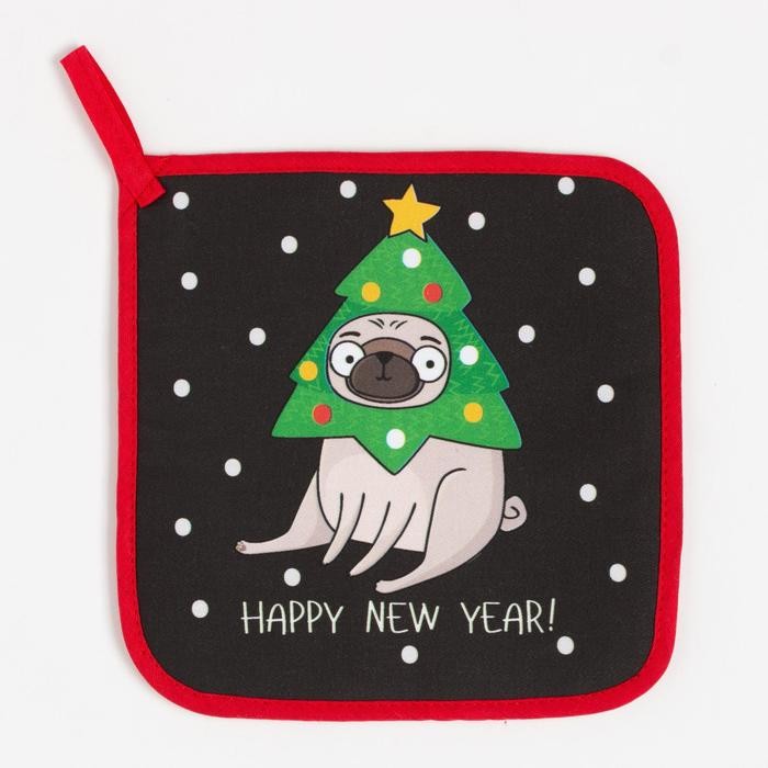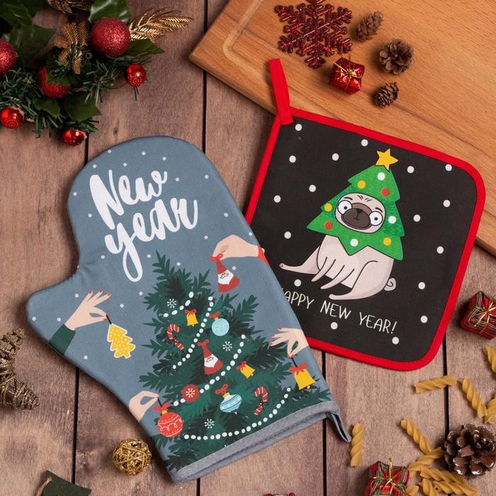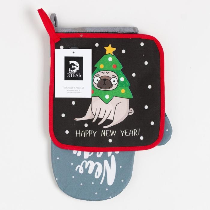 Набор кухонный Happy New Year: варежка-прихватка 20х28см, прихватка 19х19см,100%хл