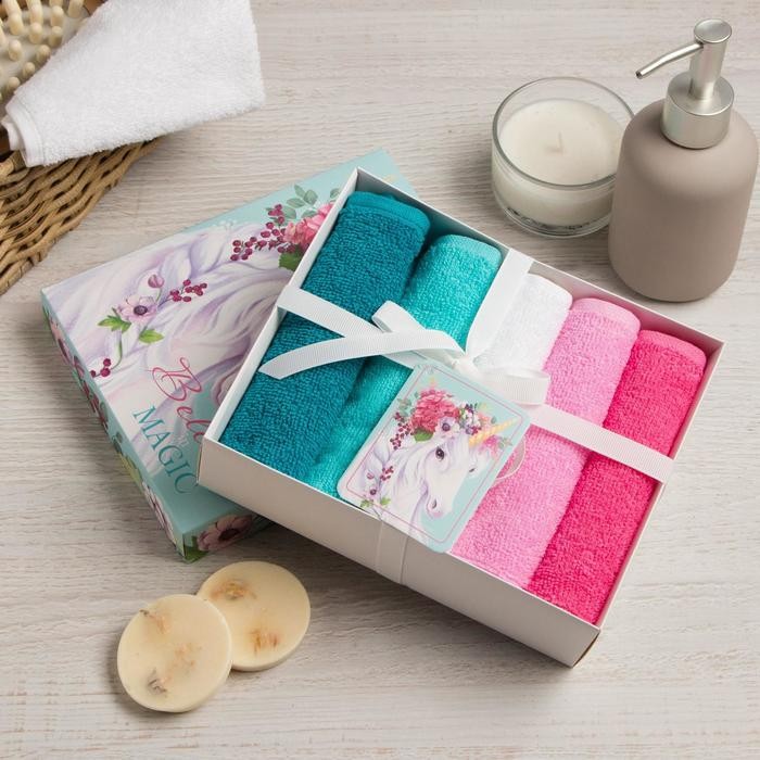 Набор махровых салфеток «Believe in magic» 30×30 см -5шт, 100% хл, 340гр/м2
