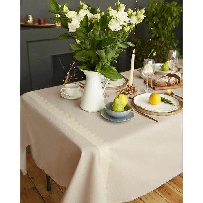Скатерть «Этель» 110×165 см, цв. кофейный с золотой нитью, 100% хлопок, 163 г/м2