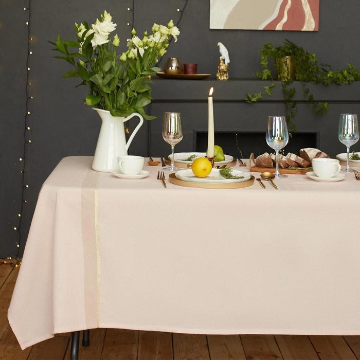 Скатерть «Этель» 180×165 см, цв. пудровый с золотой нитью, 100% хлопок, 163 г/м2
