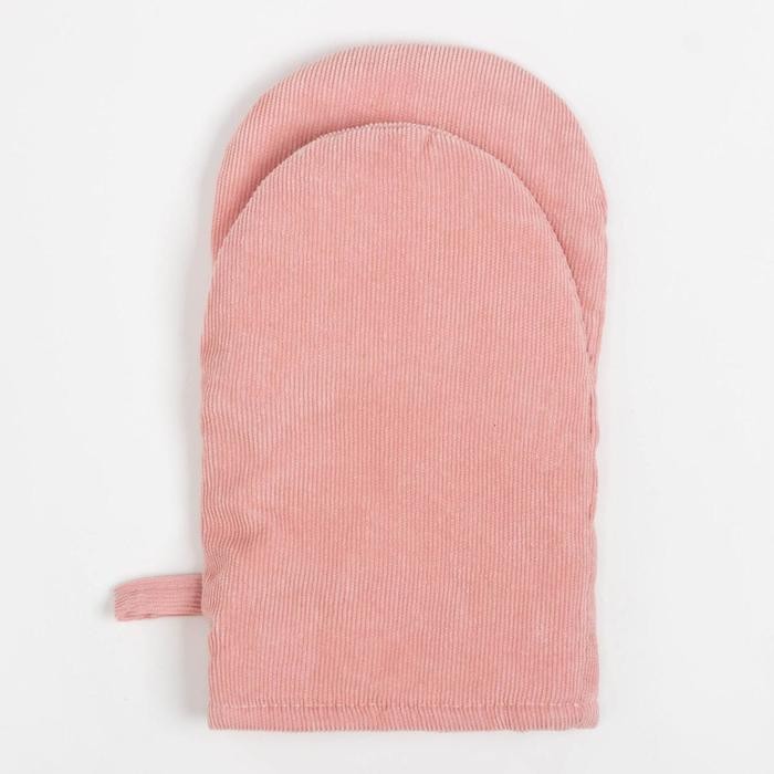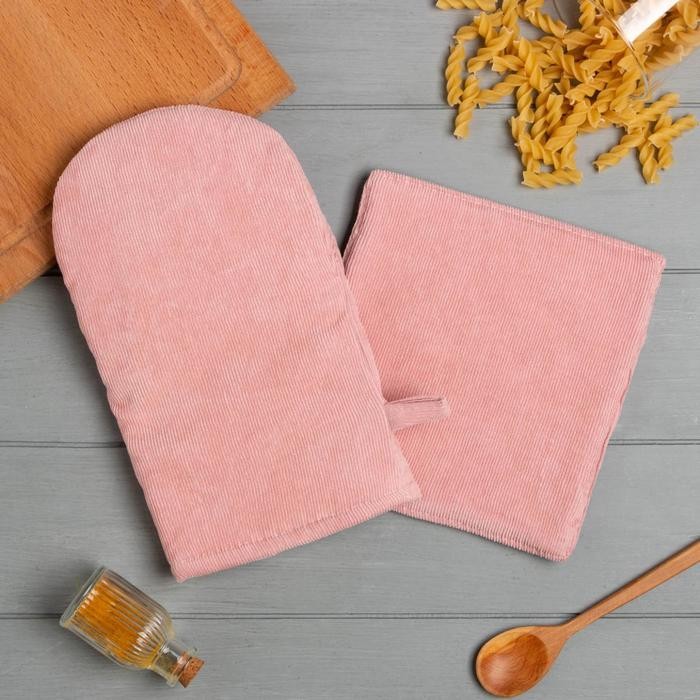 Кухонный набор 2 предмета Этель «Классика» цвет розовый, прихватка 19*19 см, варежка 27*14 см