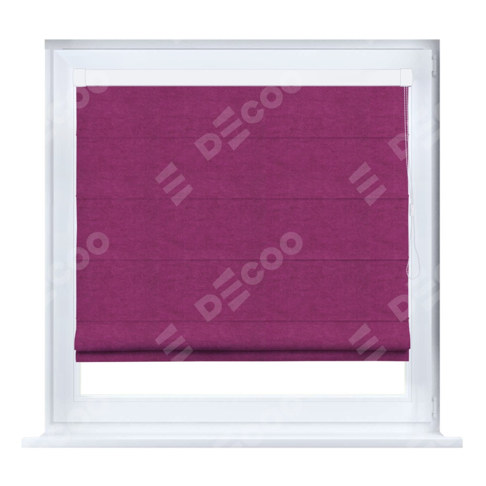 Римская штора кассетного типа, производителя «Cortin», устанавливается только на пластиковые окна и прилегает к стеклопакету, пошита из ткани вельвет фиолетовый, артикул 85552.
