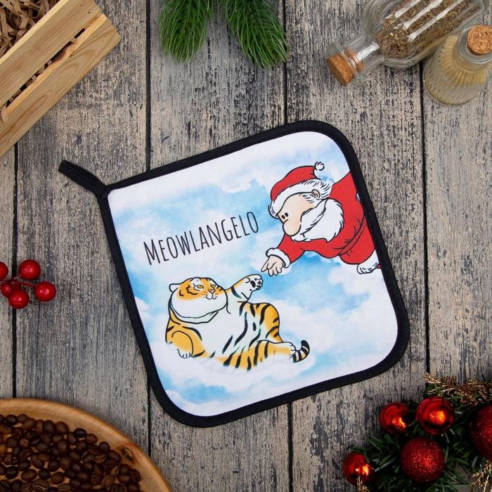 Прихватка «Новый год: Meowlangelo» 19×19 саржа,100% х/л,ватин 250г/м2