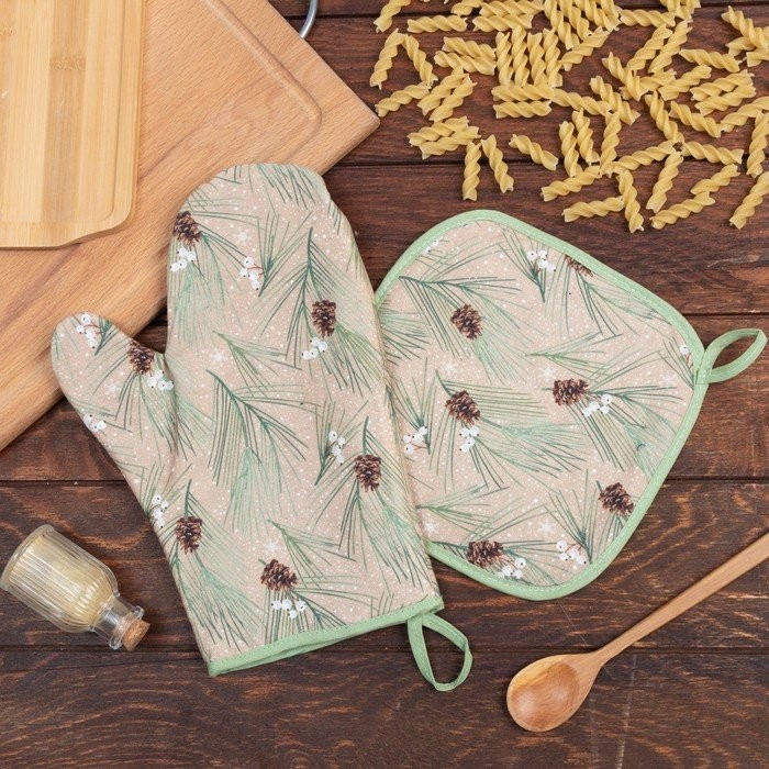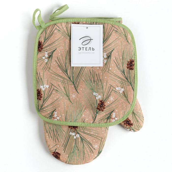Набор «Spruce branches» варежка-прихватка 20х28см, прихватка 19х19см, 100% хл, ватин 250г/м2