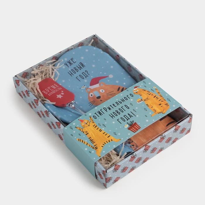 Новогодний набор подарочный « Отигрительного нового года» варежка-прихватка, лопатка силикон