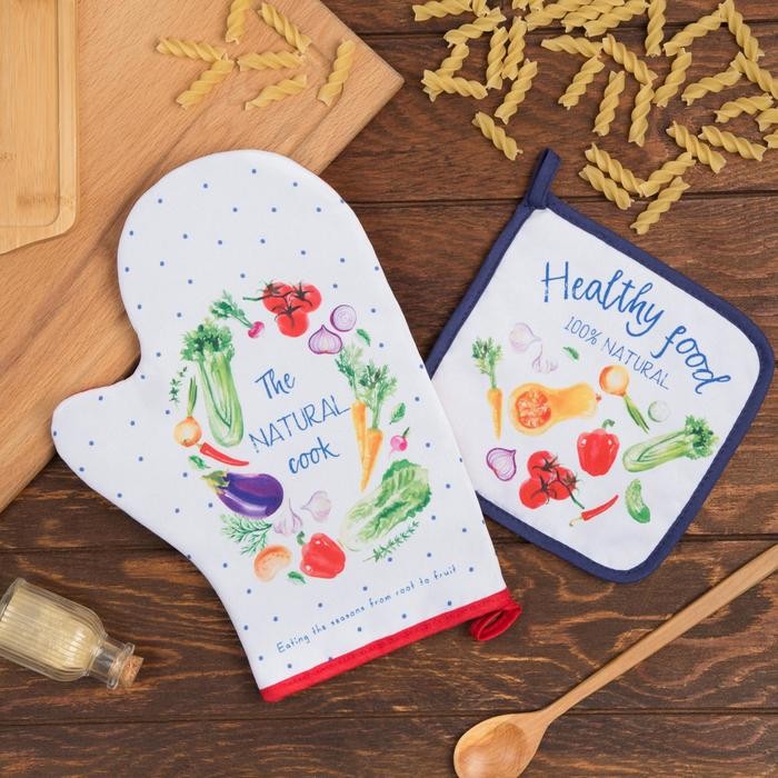 Набор кухонный «Натур продукт» варежка-прихватка 20х28см, прихватка 17х17см, 35% х/л,65% п/э