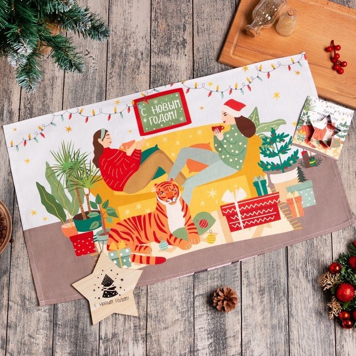 Набор кухонный «Новый год: Уютный дом» подставка, полотенце, формочка