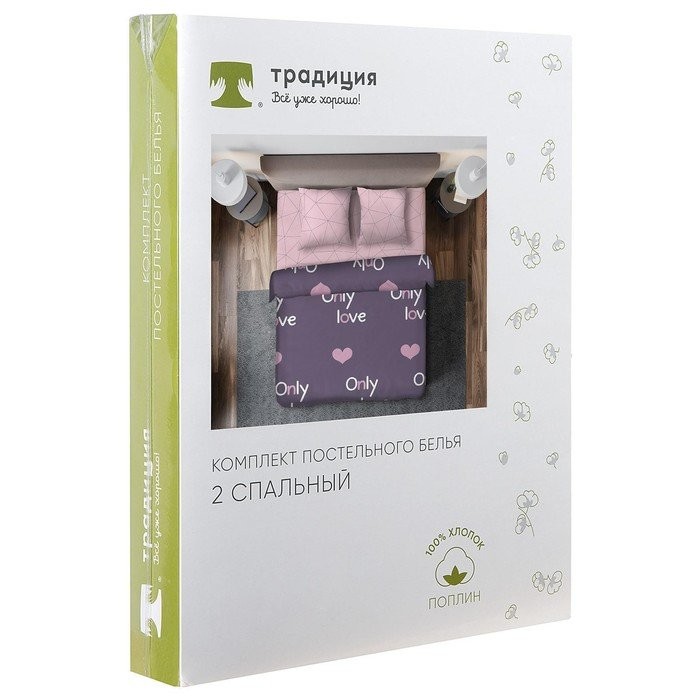 Постельное бельё 2сп Традиция Только Любовь 175×217,180×220,70х70см 2шт, поплин 110г/м, хлопок 100%