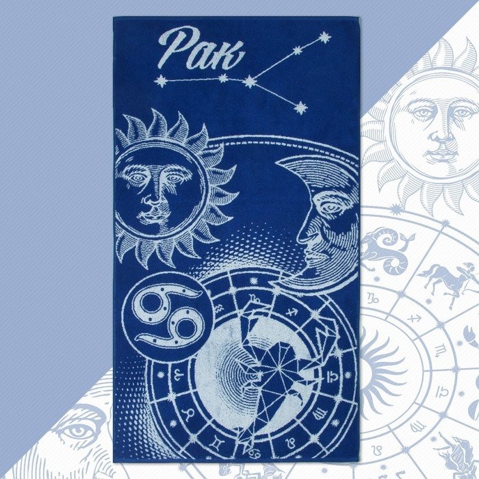 Полотенце махровое Этель «Знаки зодиака: Рак» синий, 67×130 см, 100% хлопок, 420гр/м2