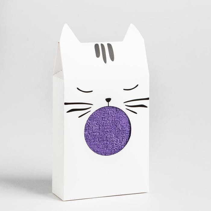 Полотенце подарочное Экономь и Я «Котик» 30*60 см, сиреневый, 100% хл, 320 г/м2