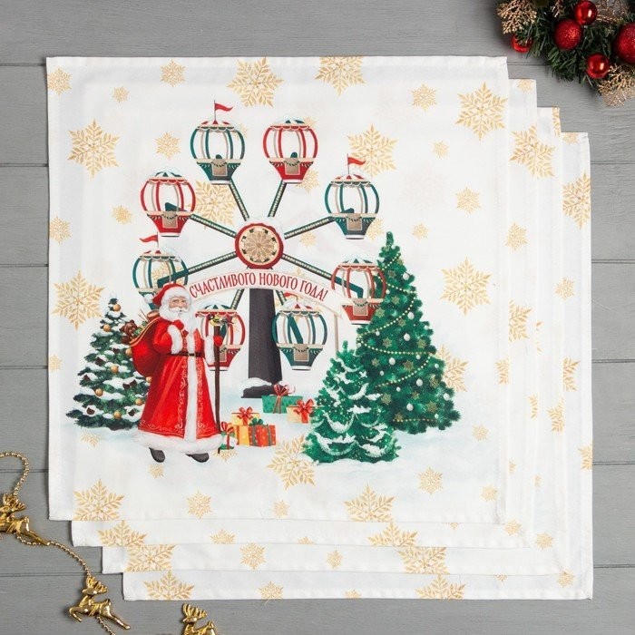 Набор салфеток «Этель» Новогодняя ярмарка 40х40см 4 шт, 100% хл, саржа 190 гр/м2