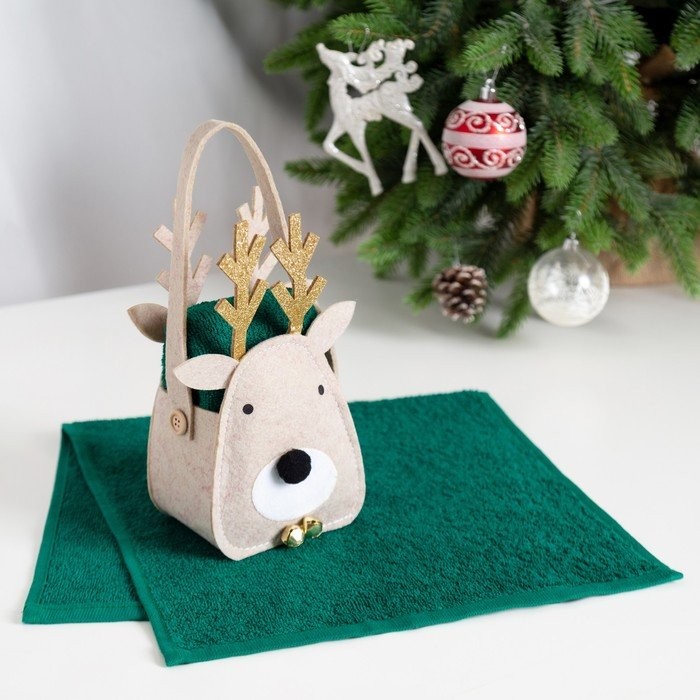 Полотенце в корзинке Экономь и Я «Олень» 30*60 см, цв. изумрудный, 100%хл, 320 г/м2