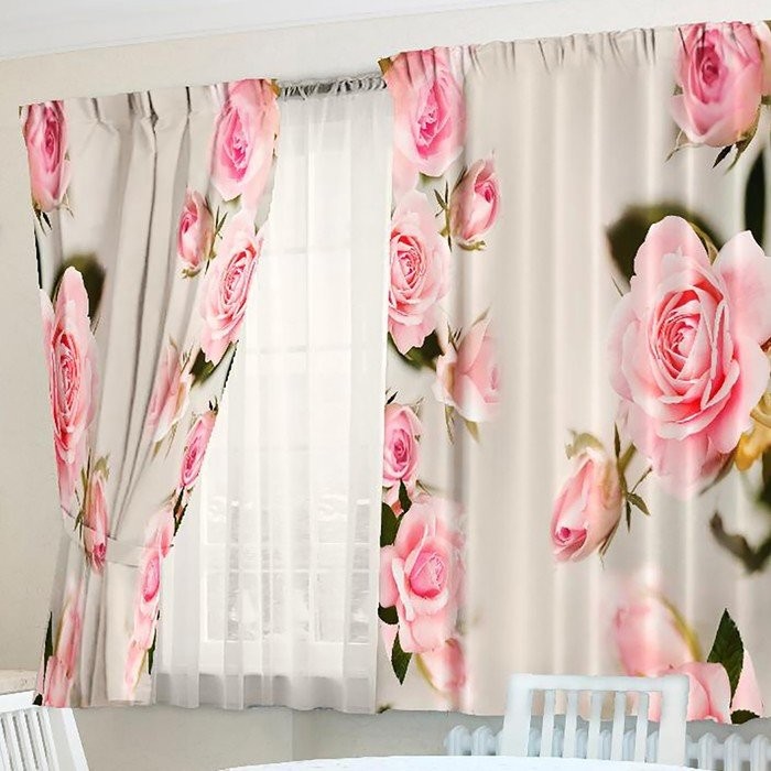Фотошторы для кухни Цветочные грезы 145х160см-2шт, габардин, пэ 100%, 145г/м2
