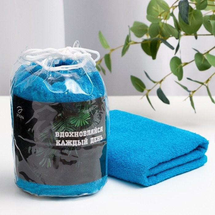 Полотенце подарочное Этель «Вдохновляйся» цв.голубой, 50х90см, 100% хл, 340 г/м2