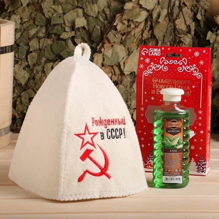 Подарочный набор Новый год Шапка «Рождённый в СССР» + Шампунь Алоэ