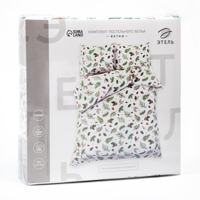Постельное белье «Этель» Евро Ветки 200*217 см, 220*240 см, 70*70 см — 2 шт