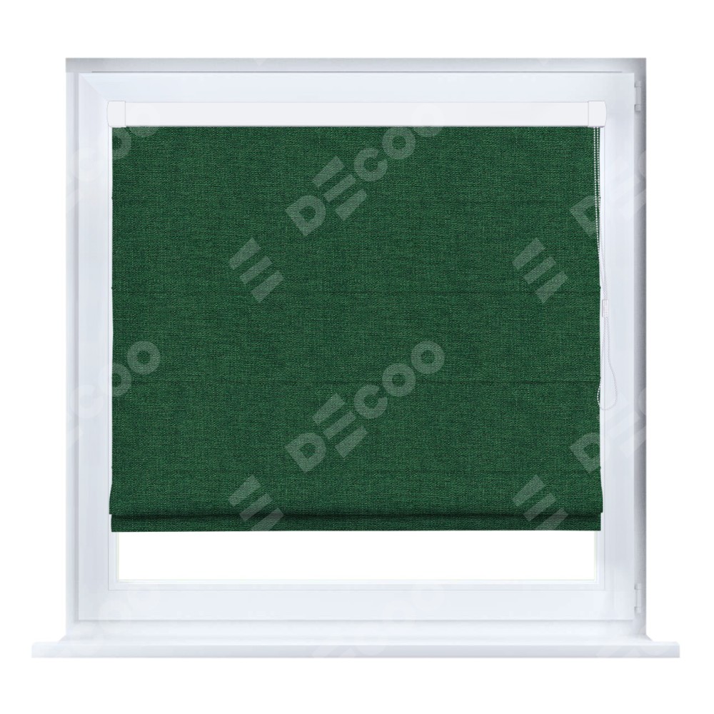 Римская штора кассетного типа, производителя «Cortin», устанавливается только на пластиковые окна и прилегает к стеклопакету, пошита из ткани лён серо-зелёный, артикул 63740.