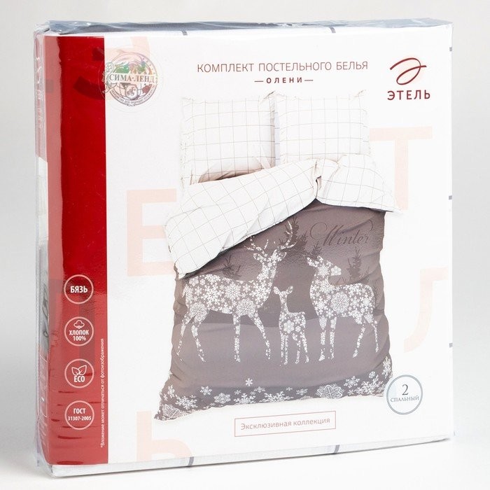Постельное бельё «Этель» Евро Олени 200*217 см, 220*240 см, 70*70 см — 2 шт, бязь 125гр/м2