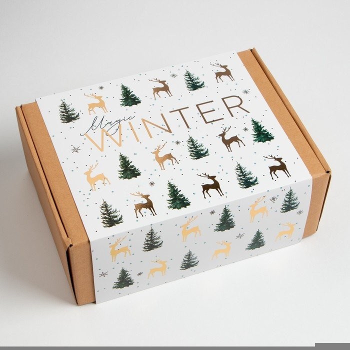 Подарочный набор новогодний Этель Magic winter полотенце 30х60см и аксессуары (4 предм)