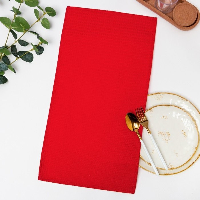 Полотенце 35×60 см, красный, вафля, 240 гр/м2, хлопок 100%