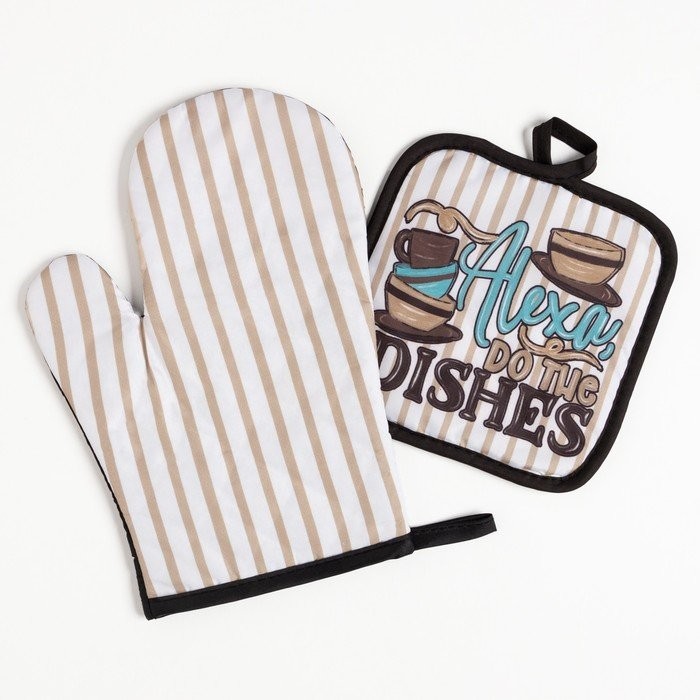 Кухонный набор (2 предмета) Доляна Dishes, прихватка 17×17 см, варежка 26×16 см, 100% п/э
