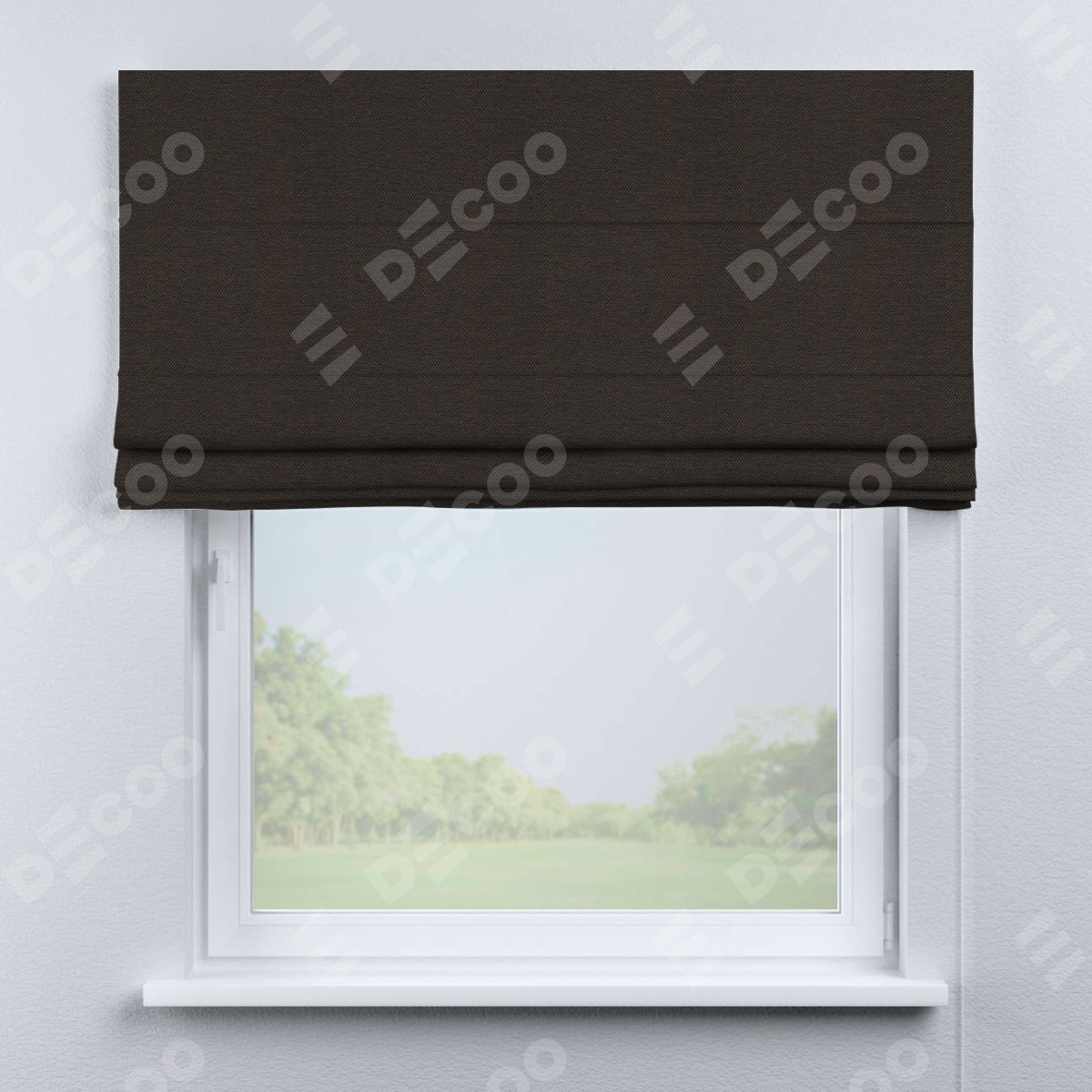 Римская штора производителя «Cortin», используется для проёма, пошита из ткани лён димаут венге, артикул ткани 85410. Имеет универсальный механизм и подходит для монтажа: на потолок, на стену и в нишу.