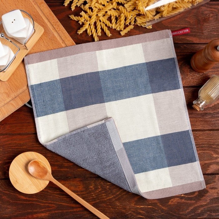 Салфетка для уборки двухсторонняя Доляна «Клетка» цв.синий 35×35 см, 100% хлопок