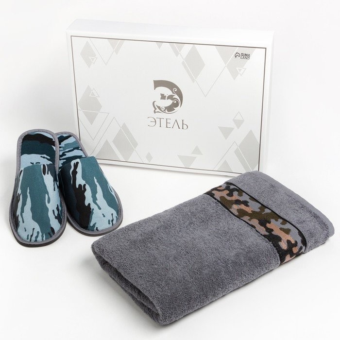 Набор подарочный Этель «Милитари Grey» полотенце 70*130 см+тапки муж 42 р-р