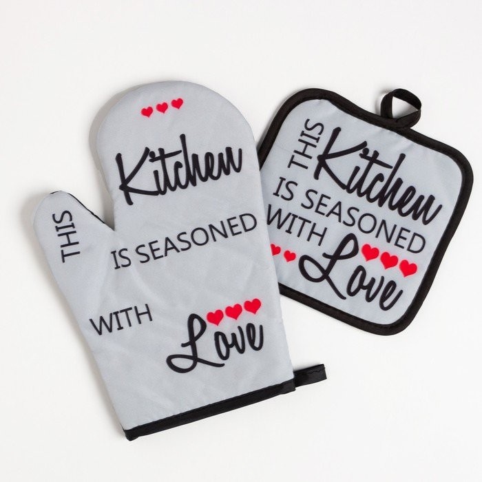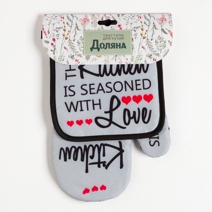 Кухонный набор (2 предмета) Доляна Kitchen, прихватка 17×17 см, варежка 26×16 см, 100% п/э