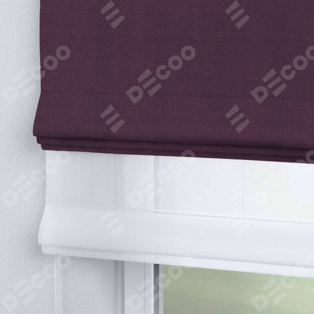 Римская штора день-ночь производителя «Cortin», используется для проёма, пошита из двух полотен, с лицевой стороны лён димаут фиолетовый артикул 8817, вторая ткань тюль (по стандарту комплектуется тюль белого цвета артикул V-01). Имеет универсальный механизм и подходит для монтажа: на потолок, на стену и в нишу.