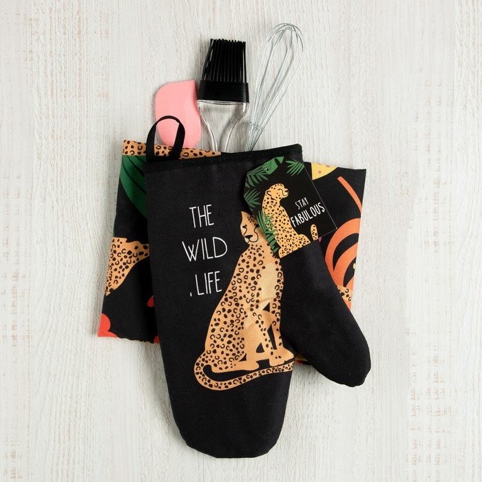 Набор подарочный The wild life: полотенце, варежка-прихватка, кисть, лопатка, венчик