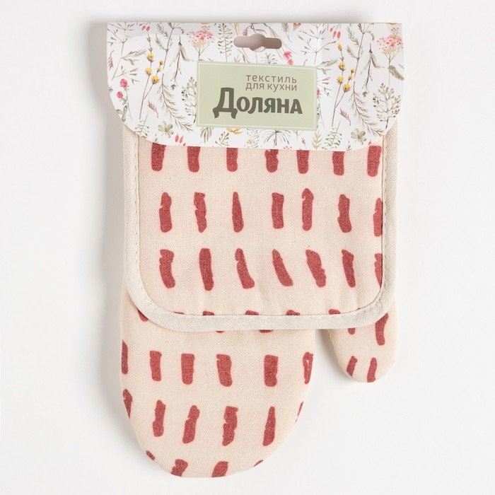 Кухонный набор (2 предмета) Доляна «Тенденция», цвет красный, прихватка 17×17 см, варежка 26×16 см, 100% п/э