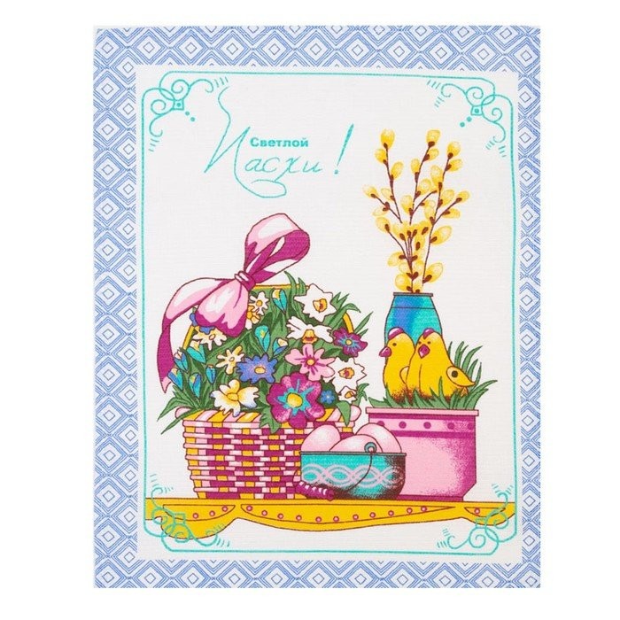 Полотенце 45×60 см, Светлая Пасха (рис.3), голубой, вафля, 160 гр/м2, хлопок 100%