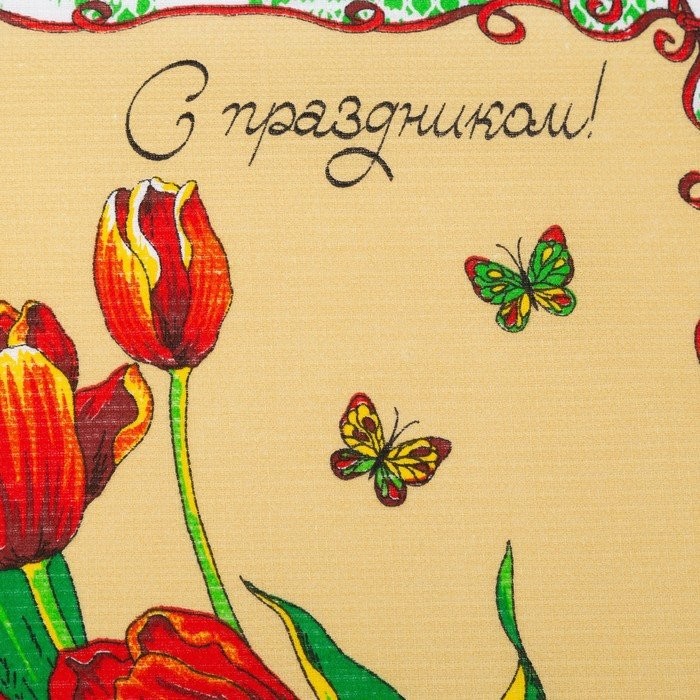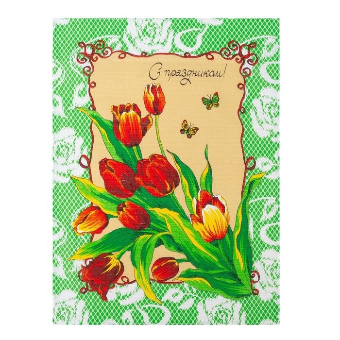 Полотенце 45×60 см, С праздником, салатовый, вафля, 160 гр/м2, хлопок 100%