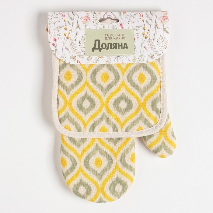 Кухонный набор (2 предмета) Доляна «Волны», прихватка 17×17 см, варежка 26×16 см, 100% п/э