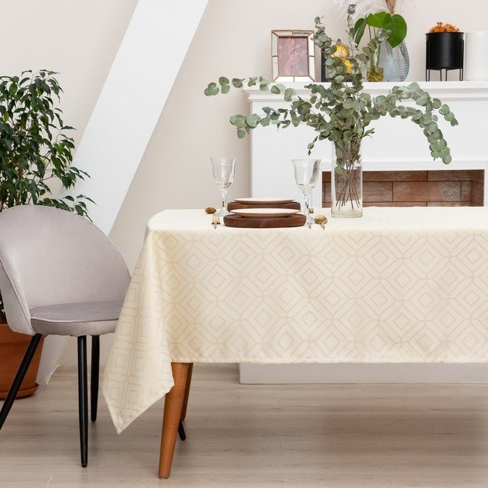 Скатерть Этель «Ромбы» цв.бежевый, 142*283 +/-3 см, 115 ±10 гр,100% п/э