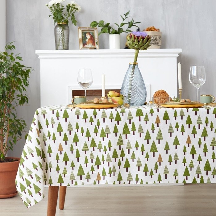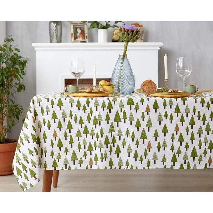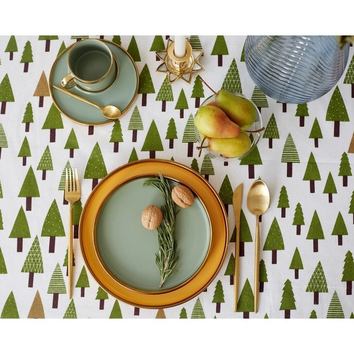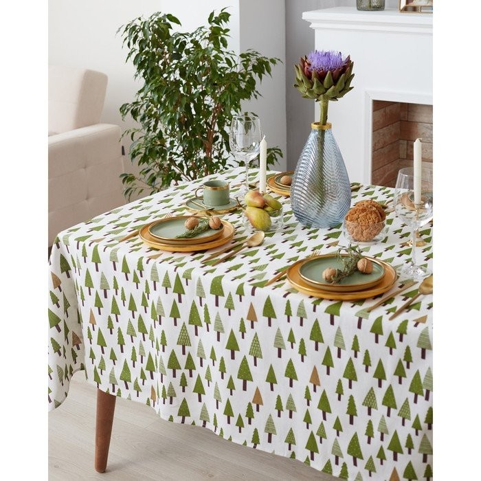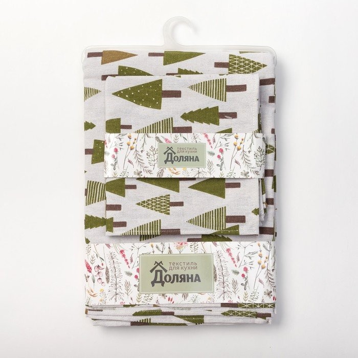 Набор Доляна скатерть 145х200см/салфетки 40х40см 4шт, Хвойный лес, 100%пэ, рогожка 200 гр/м