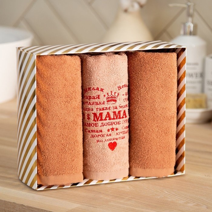 Набор полотенец Экономь и Я «Мама» 30*60 см-3шт, 100% хл, 320 г/м2