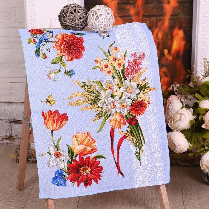 Полотенце 45×60 см, Цветы для любимых (рис.3), вафля, 170 гр/м2, хлопок 100%